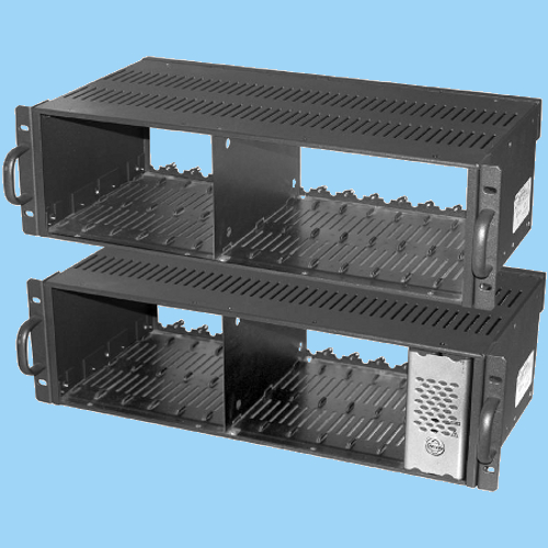 -The RK5000PS-3U chassis has 12 empty slots that can hold singlewidth or double-width fiber optic modules or single-width UTP modules. The modules and the internal power supply are 3 rack units (RU) high. The internal power supply powers all modules and can be replaced easily if it fails. The chassis is designed to mount into an EIA-standard, 19-inch rack